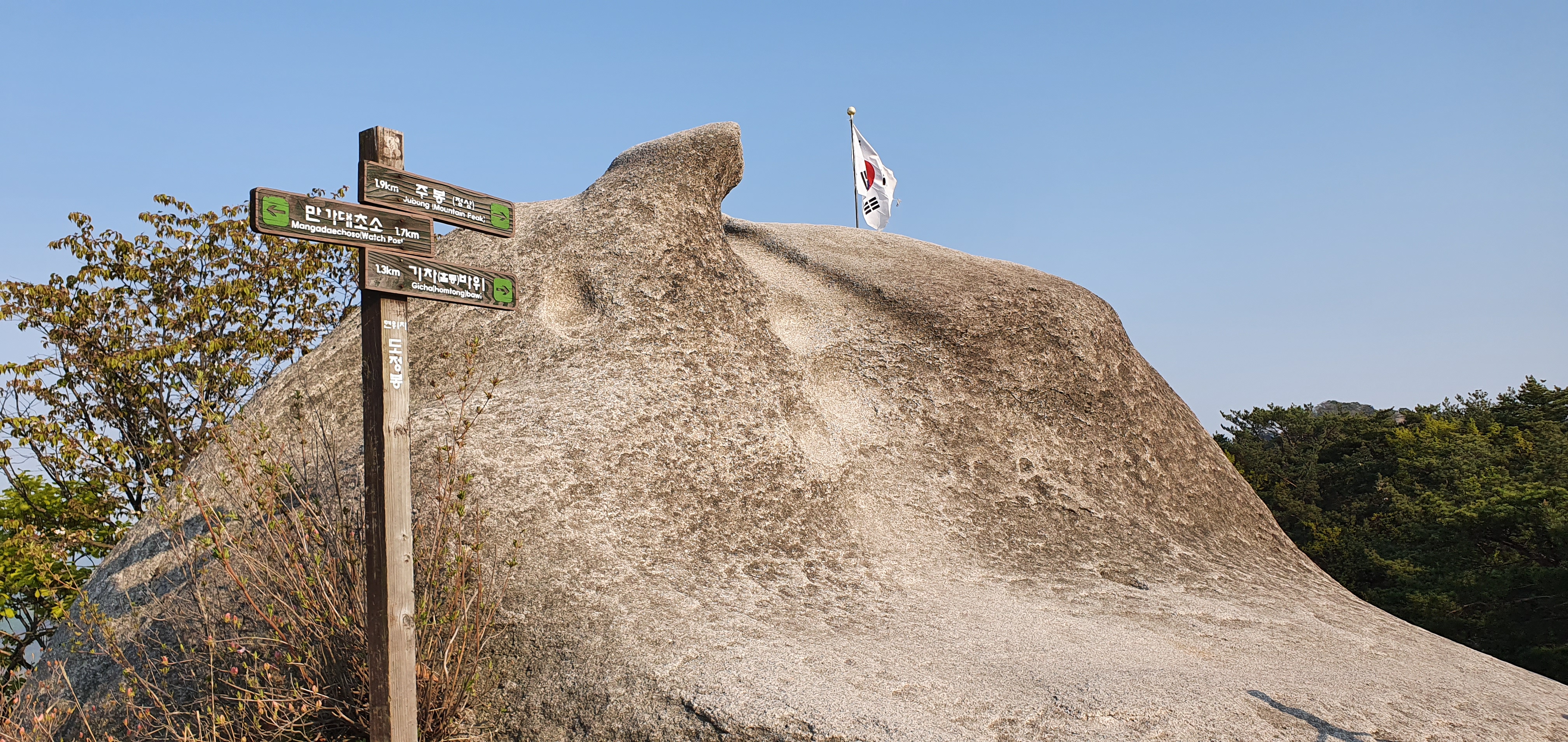 등산을 갈 때마다 산 위에서 먹기보다는 내려와서 식사를 하는 것이 습관처럼 되어 있어 정상에 오르면 사진을 몇 장 찍고 바로 내려옵니다.